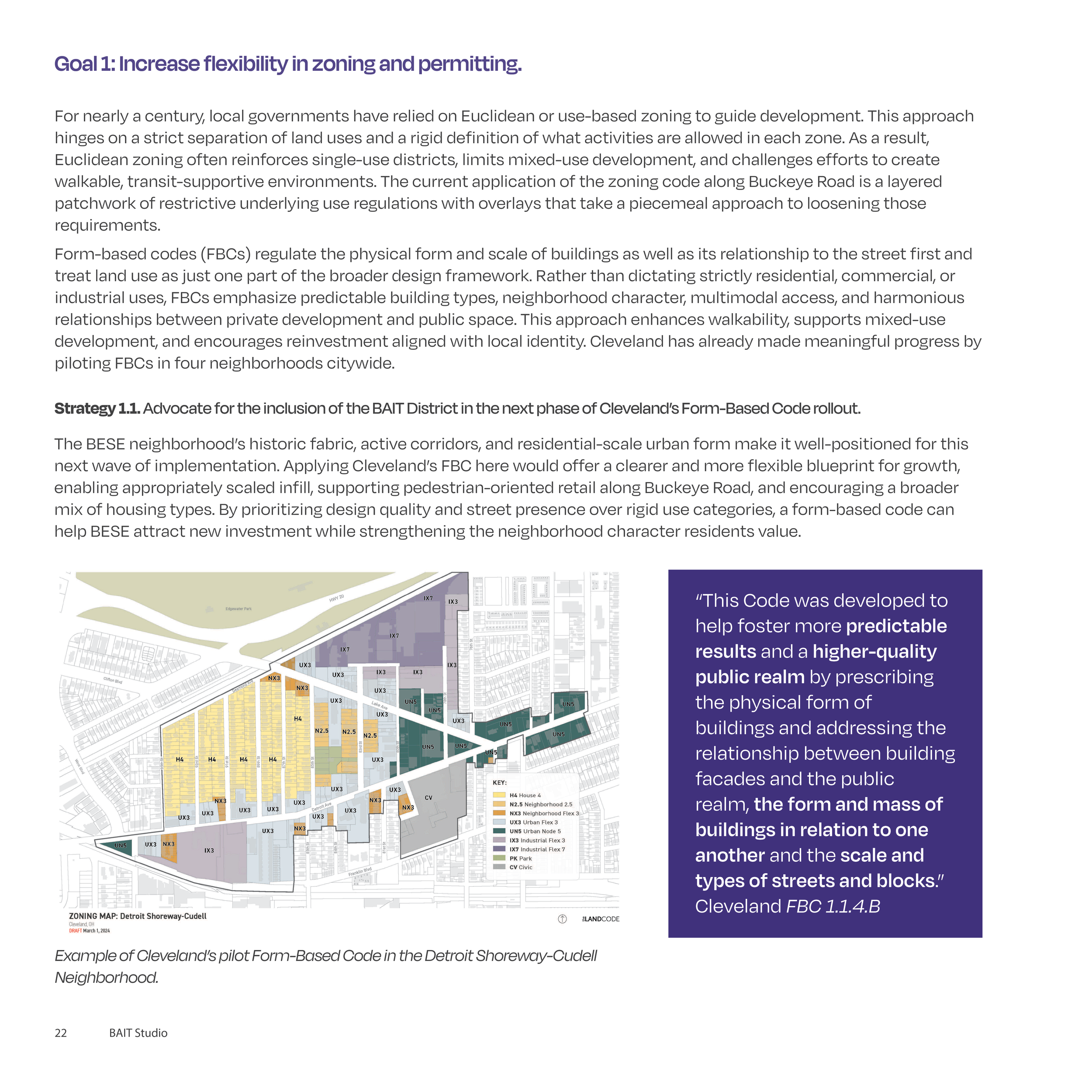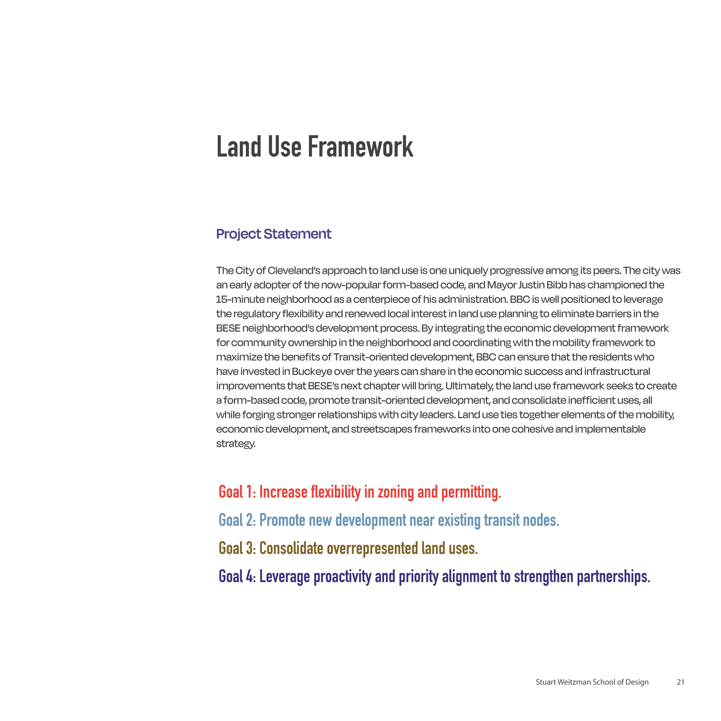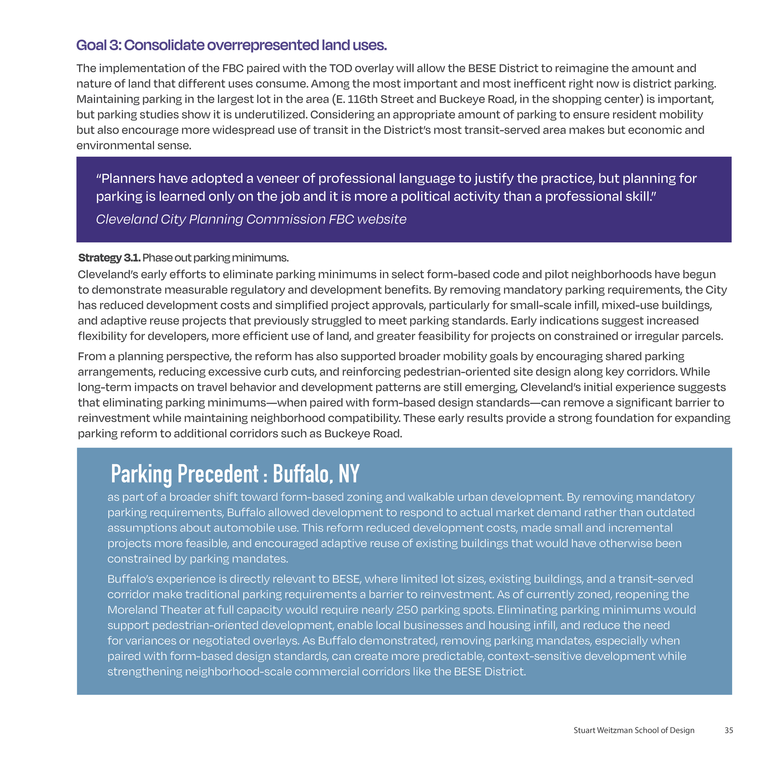 Land use and zoning section of a neighborhood strategic plan for the Buckeye Neighborhood (renamed BESE in this plan) in Cleveland, OH.